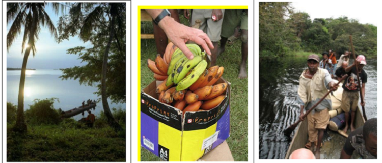 This day, we go further upstream to the village of Bokote or Nkake. The river becomes smaller and we enter slowly into the rainforest. Camp and overnight Our helpers will row till the village of Samba. This part of the trip is also with dense rainforest and often, you can’t see the sky anymore. Also here, we buy our food locally and we pass the night in the village, making our camp where the Chief allows us. For breakfast, we have bread with jam, cheese spread and sometimes: eggs. We buy all local fruit we can find for lunch and for diner, we have Congolese cuisine. On the road, we find fresh fish, chicken, duck and goat. We try the local vegetables and eat it with rice.