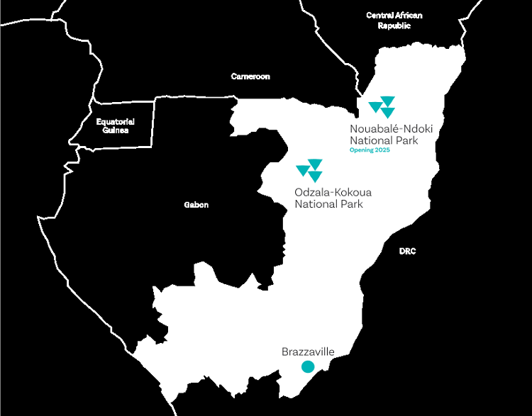 Straddling the Equator in Central Africa and bordered by Gabon and Cameroon, the ROC is in the midst of the Congo Basin, the world’s second-largest rainforest after the Amazon, home to stunning biodiversity of animal and plant species, including Western Lowland Gorilla. There are only three private lodges in Odzala-Kokoua National Park, in the northwest of the country, and we are preparing to open two additional lodges in Nouabalé-Ndoki National Park, around 250 km (160 mi) to the northeast, on the border with Cameroon.
