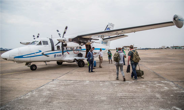 To arrive at the lodges, we operate weekly scheduled flights between Brazzaville and our private airstrip at Mboko, in Odzala-Kokoua National Park, on a LET L-410 12-seater plane. Flights are included in the journey cost. The round-trip flights operate Mondays and Thursdays only and take approximately 2 hours. The flight from Brazzaville to Mboko departs at around 1pm. The return flight from Mboko lands in Brazzaville at around 11am. Note that all arrival and departure times are dependent on weather conditions. Please note the weight limit on these internal flights: 15 kgs (33 lbs) per person in total weight, inclusive of hand luggage. We also operate all transportation within the park and between the three lodges